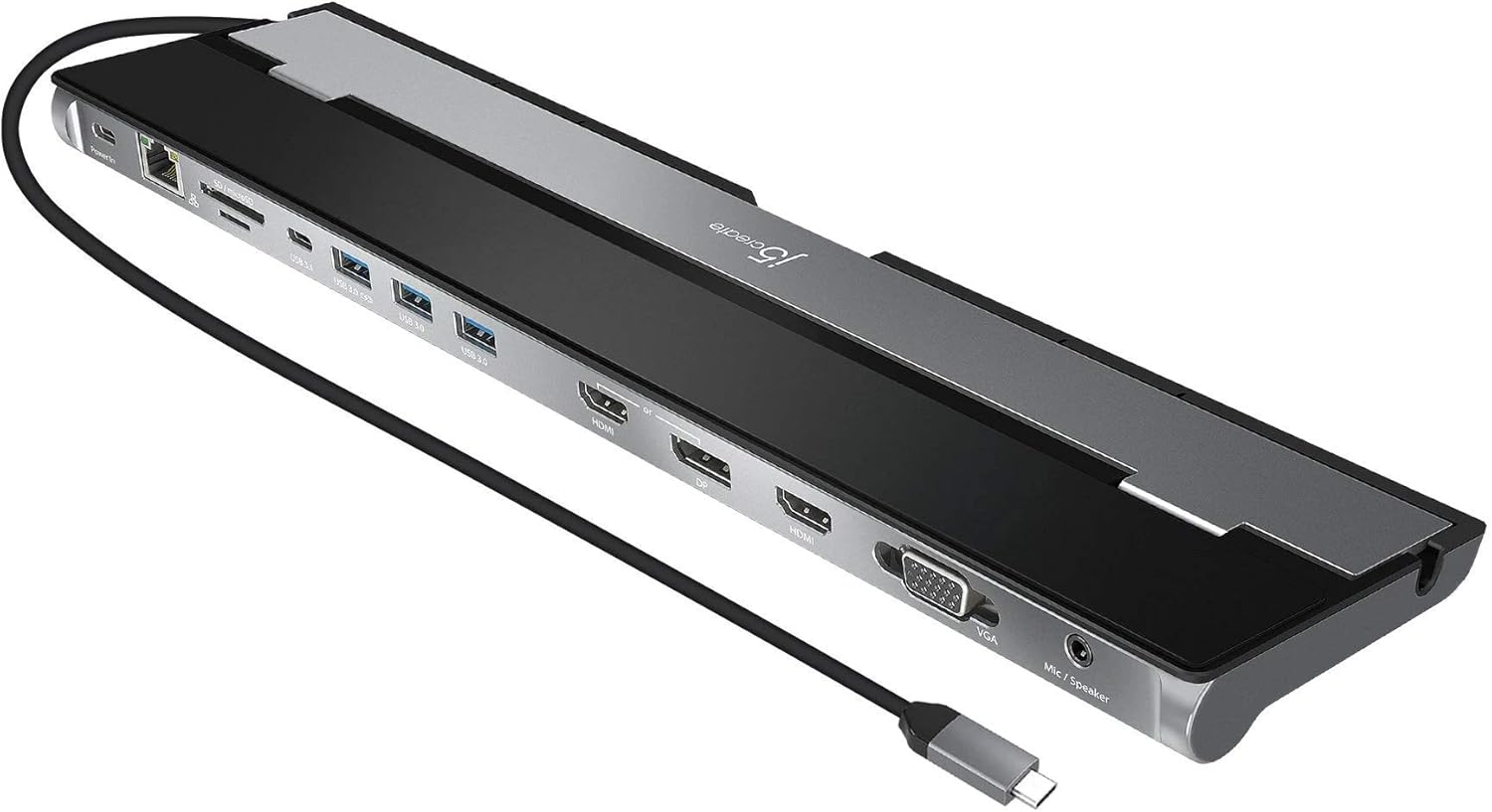 j5create USB C Docking Station- Supports up to 3 Display Simultaneously | HDMI, DisplayPort, VGA, 100W PD Fast Charging, Gigabit Ethernet | Comes with Type C Cable Compartment (JCD543)