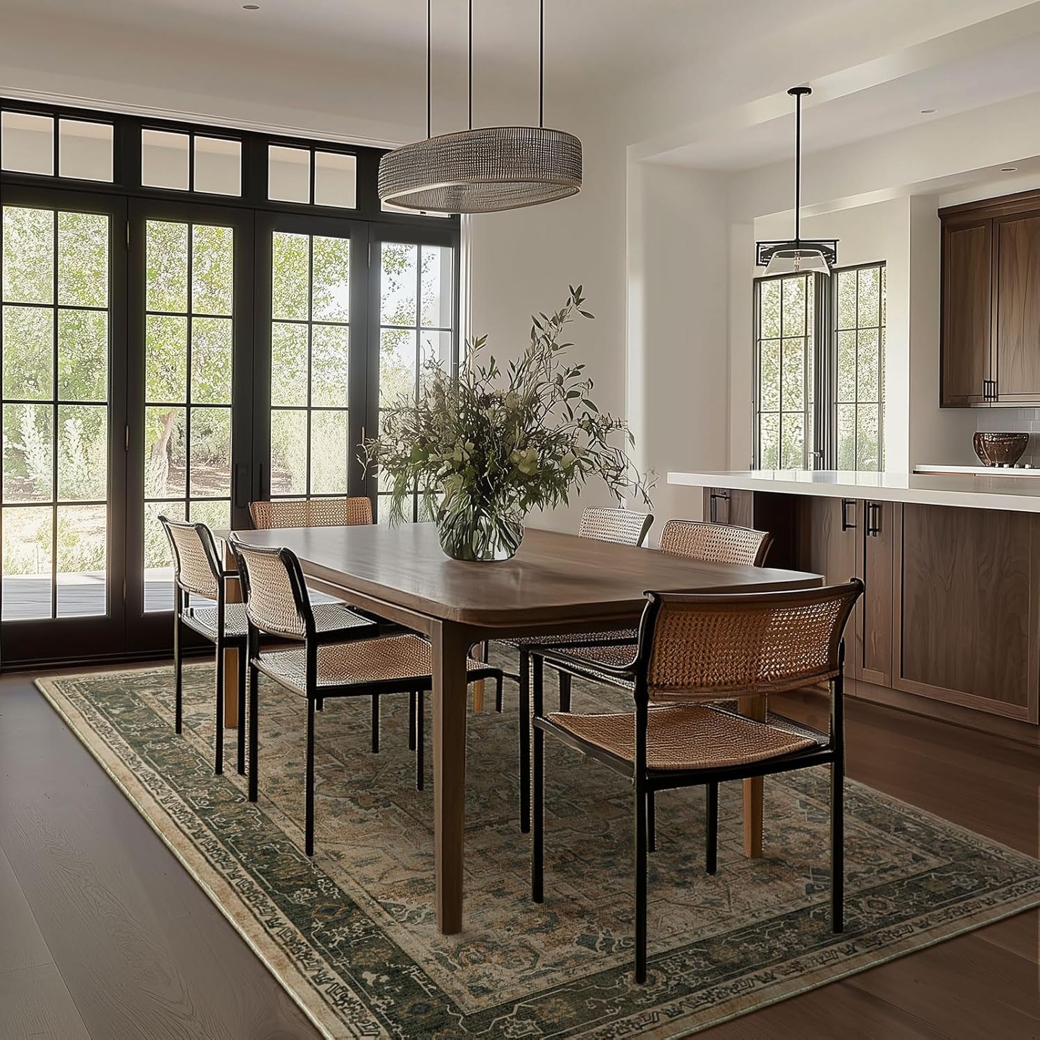 Vintage Distressed 5×7 Area Rugs for Living Room Bedroom Non Slip Washable, Medallion Pattern Printed Low Pile Thin Carpet Rugs for Dining Room/Kitchen/Home Office, Multi Brown/Olive Accents