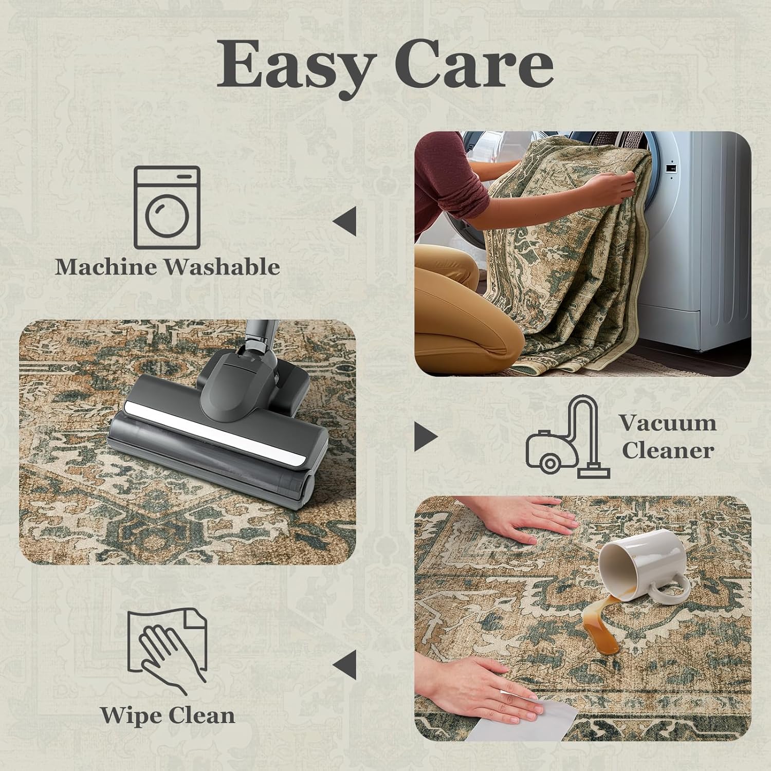 Not just visually appealing, this rug is also functional with a non-slip backing that ensures stability and safety, especially in high-traffic areas. Additionally, the rug is washable, making it a practical choice for busy households or homes with pets and children.